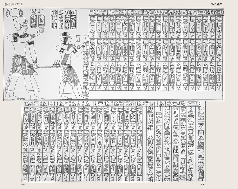 Pierwsze zdjęcie – A oto rysunek sceny z dzieła J. Dümichena, „Historische Inschriften altägyptischer Denkmäler”, tom 2, tablica XLV