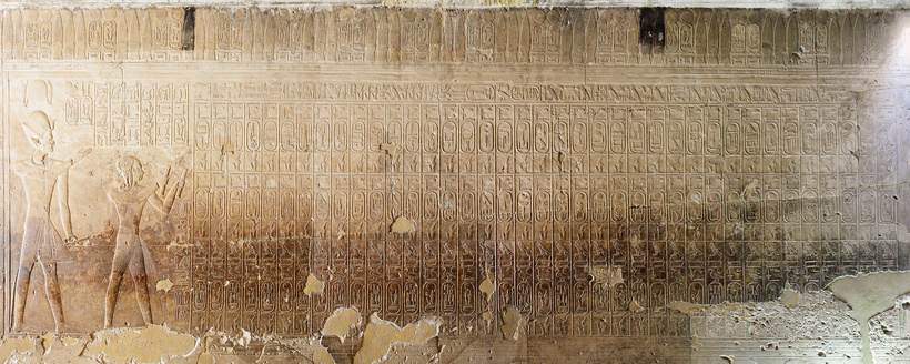 Tekst tej sceny to litania ofiarna, którą Seti I recytuje dla królów, których imiona znajdują się na liście.