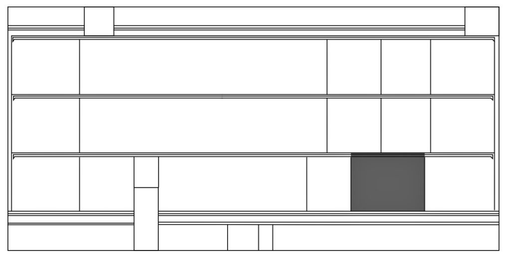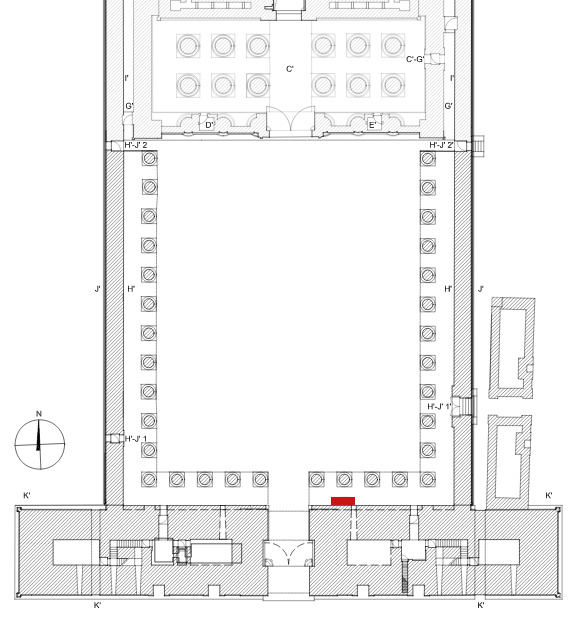 📍 Południowa ściana Dziedzińca Otwartego (H’), strona wschodnia; na szaro oznaczono lokalizację sceny.