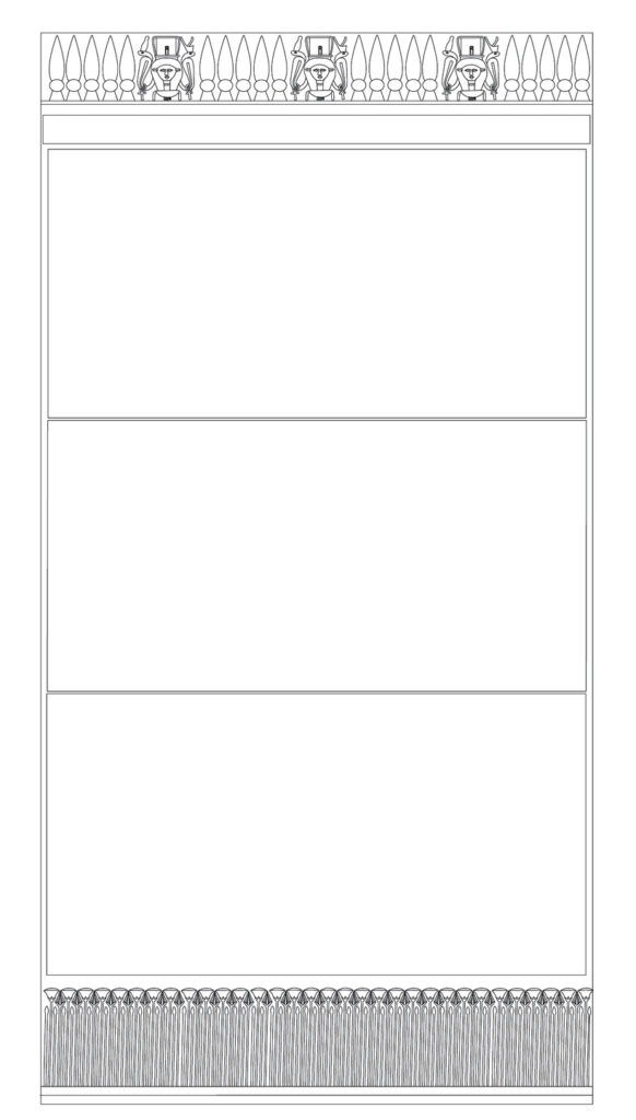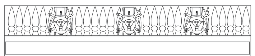 – głowa Hathor umieszczona na hieroglifie oznaczającym „złoto” (nbw), nosząca koronę Naos Sistrum z ureuszem, który nosi tarczę słoneczną, flankowana przez dwie boginie Nekhbet i Uto w postaci ureuszy: