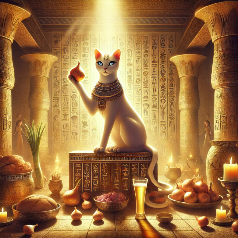 „Dzień żucia cebuli dla Bastet” to jedno z mniej znanych, ale niezwykle intrygujących świąt starożytnego Egiptu. Było ono obchodzone w świątyniach Bastet i wiązało się z symbolicznym aktem żucia cebuli, który miał głębokie znaczenie rytualne i magiczne.
